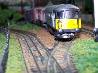 Class 33 leads a goods train onto underground track |