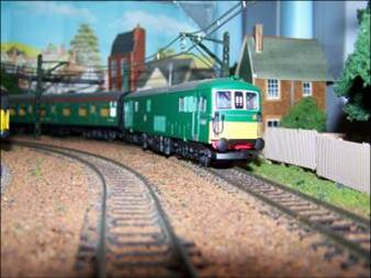 Passenger train lead by a class73 passes Crompton North with a rake of three SR Coaches |