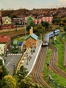 Rolling stock, road vehicles stations, buildings, some signals and overhead wiring, switches and transformers were etc were saved from the rest of the layout comprising Arnos Junction and Enfield Halt for reuse on the new layout. The base boards and track for these sections were not able to be used again. Click here to view the second layout. The increased size of the work shed and lessons learned from building the new layout have enabled a bigger and hopefully better layout to be build in less time. As not all the space in the work shed has been used there is also scope to extend the layout further overtime. The build time for the new layout (Norwook-City 2) was six months although more time was been available because of retirement. Norwood-City 3 (2014-onwards) In 2014 alterations were made to the layout to make it easier to operate the major change involving the elimiation of a centre section.