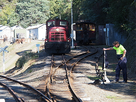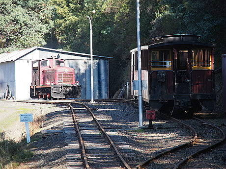 | The train is leaving the platform to enter loop to allow the engine to reverse | Carriages on the loop with the engine detached |